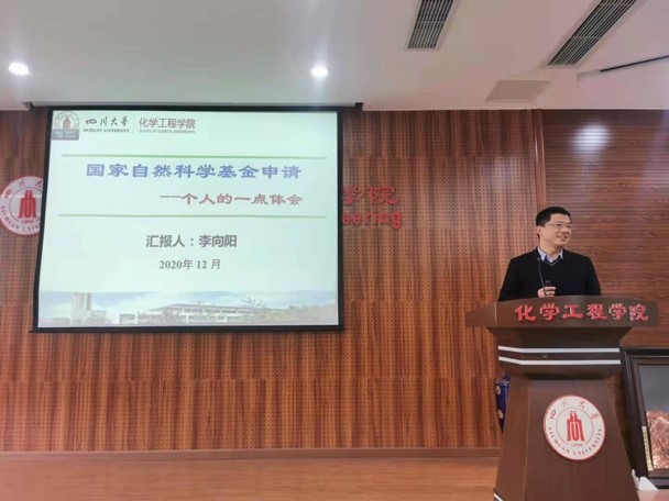 申请、获准国家自然科学基金项目的情况以及科研项目总体情况做了简要介绍,并动员大家积极参与基金的申报。在化工系汪伟教授主持下,李向阳教授受邀做了题为《国家自然科学基金申请-个人的一点体会》的主题讲座,李老师详细分享了基金选题与基金撰写方面的经验。交流会结束后,参会教师与李老师就基金申报的相关问题进行了深入的交流。