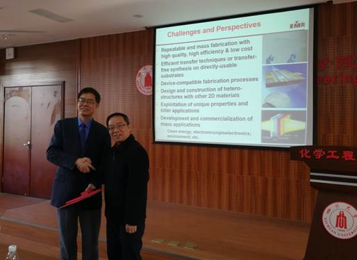 313报告厅作了“石墨烯等二维材料的制备与应用探索”为题的精彩学术报告。报告开始前,学院庞国伟书记与成院士进行了交流沟通。本次讲座由化工学院副院长唐胜伟教授主持,来自化工学院、材料学院、高分子科学与工程学院等相关学院师生聆听了本次学术报告。