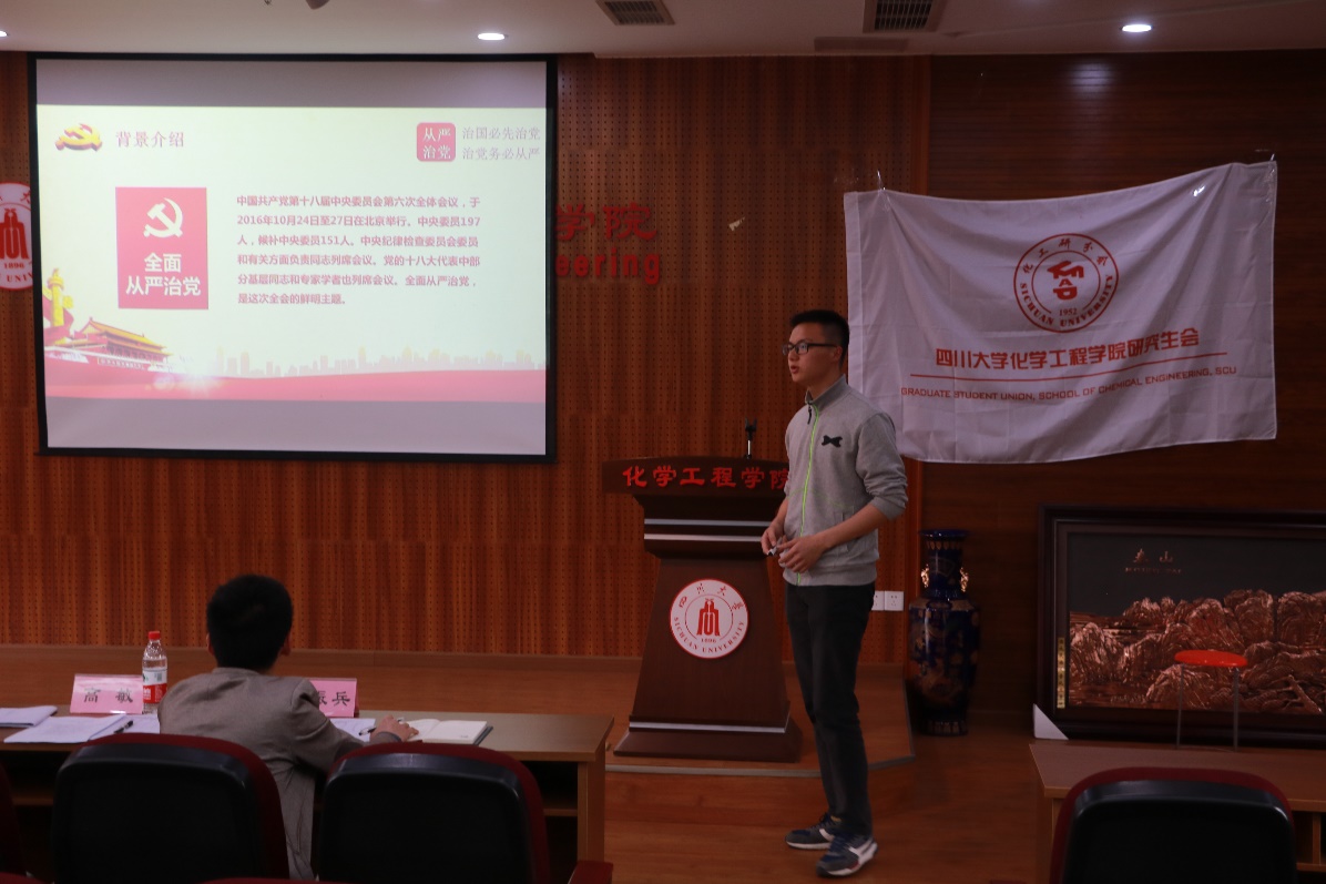 党支部学习之党风廉政建设专题PPT制作与宣讲大赛”于2017年4月25日下午14:30在望江校区化工楼313报告厅举办。本次活动的评委嘉宾有化学学院党委陈晓东副书记、党政办主任李晓燕老师、高敏老师和研究生辅导员司振兵老师。成人网址