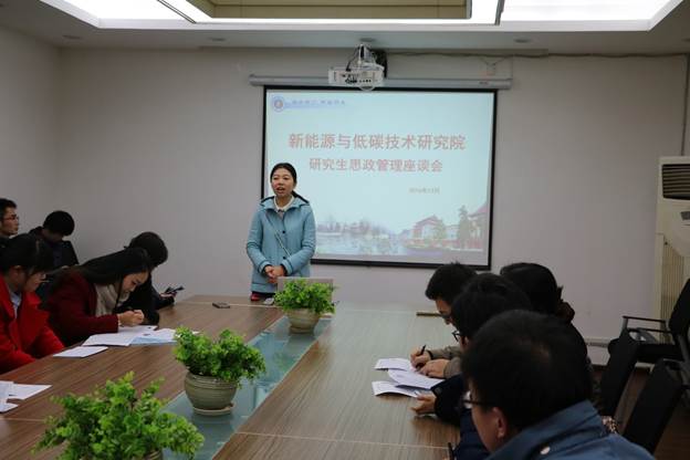 新能源与低碳技术研究院研究生思政管理座谈会在望江校区化工楼227会议室顺利举行。本次活动的目的为,思政辅导员与研究生及其行政老师见面、交流,增进了解。参会的有低碳院祁老师、向老师,化工学院司老师、姜老师以及低碳院全体研究生同学。