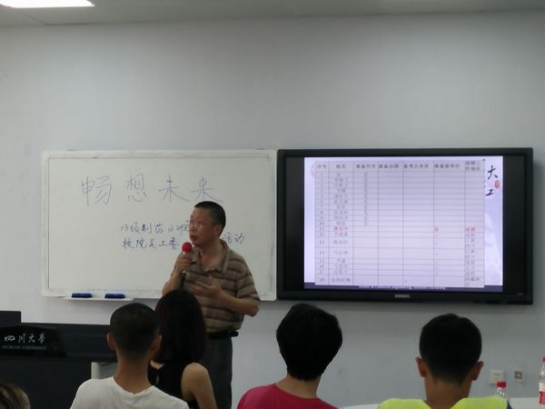 2013级制药工程专业2班开展的“跟班关爱学生成长教育实践”系列活动之一,在江安校区综合楼B座306教室举行。与会的有关工委梁明征老师、付运清老师、郭明秀老师、李维俊老师、秦自明老师、万国荣老师、谢茂农老师、徐怡老师、杨传云老师、张卫红老师、曾志源老师、赵雪琴老师、侯筑老师,制药2班班主任赵刚老师、化工学院教导员李川娜老师,辅导员喻可乐老师,以及制药2班的全体同学。