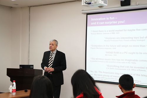 随后举行了赢创工业集团与化工学子的见面交流会。Dr. Peter Nagler以“赢创工业集团是全球最具有创新性的公司之一”为主题作了报告,介绍了赢创工业集团的产品分布,全球经营状况,布局与战略,人才培养模式以及人才引进方式等。报告得到了在座同学的热烈响应,现场同学就如何面临求职失败的遭遇、赢创工业集团是否有意向进军电动汽车领域、赢创赢家俱乐部在成人网址
