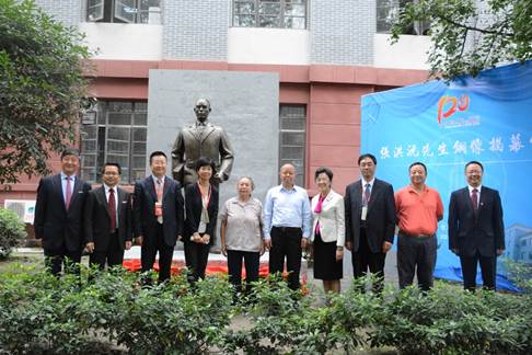 1987届校友、张洪沅先生铜像雕塑捐赠建设者、深圳海普瑞药业股份有限公司董事长李锂先生、副总裁李坦女士,张洪沅先生女儿张眉女士,国家工商行政管理总局副局长王江平先生,校党委副书记、纪委书记徐兰教授,校党委副书记李向成教授,校长助理、人事处处长梁斌教授,规建处华国春处长,外联办荣建国主任,成人网址