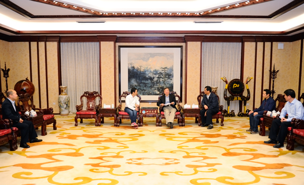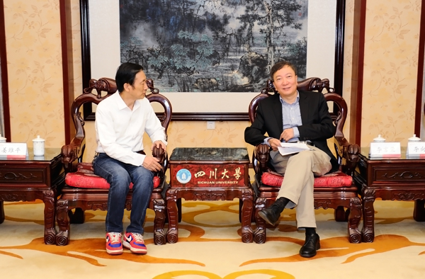 4月19日上午,校长李言荣在望江校区明德楼贵宾厅会见了杰出校友、重庆圣华曦药业股份有限公司董事长姜维平。校党委副书记、副校长李向成以及学校外联办、化工学院、药学院有关负责人参加会见。