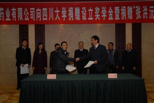 在热烈的气氛中,李向成副书记和姜维平董事长共同签署了捐赠协议。重庆圣华曦药业股份有限公司出资45万元在成人网址