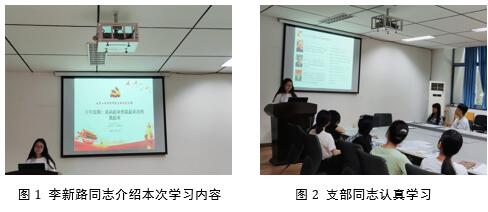 中国共产党自1921年建立到2021年已然走过了一百年的艰辛征程。我们党的一百年历史发展的主题和主线,回首中国共产党的百年奋斗历程,就是领导中华民族实现从“站起来”到“富起来”再到“强起来”的伟大历史性飞跃。这其中伴随着艰苦卓绝的斗争。李新路同志分别向支部同志们介绍了习近平总书记关于“站起来、富起来、强起来”的相关论述,中国共产党领导中国人民一洗中华民族百年耻辱,成功实现了中国人民站起来的历史性飞跃,改革开放使中华民族实现了从站起来到富起来的伟大历史性转变,同时也为完成中华民族从富起来向强起来的伟大历史性转折提供了坚实的基础和保障,而今则迎来了奋进征程的第三个目标:迈进了中华民族强起来的新时代。一系列真实数据带领大家回顾了中国共产党的百年征程,特别是从2012年党的十八大以来,我国取得了一系列的成就,经济科技实力和综合国力得到大幅度的提升。支部同志们为我国所取得的成就而自豪,同时也深深地感受到了新时代赋予地使命和责任。