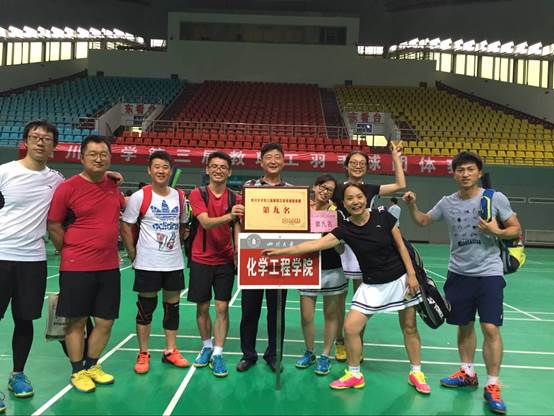 教职工羽毛球队发扬顽强拼搏、力争上游的精神,用一场又一场的胜利为我们奉献了精彩无比的赛事,也向我们展示了健康向上的化工精神。最终,学院教职工羽毛球队获得全校第九名的优异成绩,吴德建老师获得优秀运动员称号。