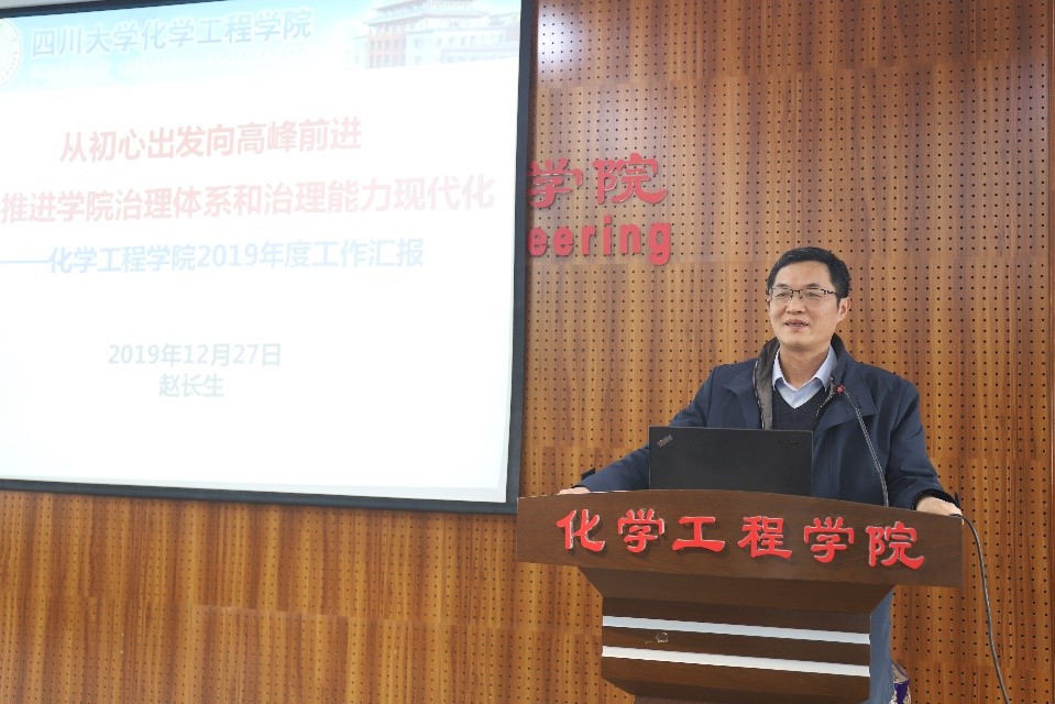 互联化工研究中心”;化学工程与工艺、制药工程2个专业进入全球工程教育“第一方阵”;新增6名国家级高层次人才;“读懂中国”征文获得教育部关工委最佳征文。随后,赵院长代表学院对全院师生员工和离退休老同志在过去一年对于学院工作的帮助和支持表示感谢。接着,结合学校“两个伟大”和全面推进治理体系和治理能力现代化,提出了2020年的工作展望。