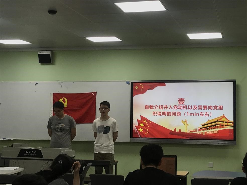 江安校区一教D102召开了接收预备党员的支部大会。本次大会议题是讨论是否接收高宇恒等十位同志为预备党员事宜。会议由支部副书记韩鸿博同志主持,支部应到39人,实到39人,其中正式党员12人。