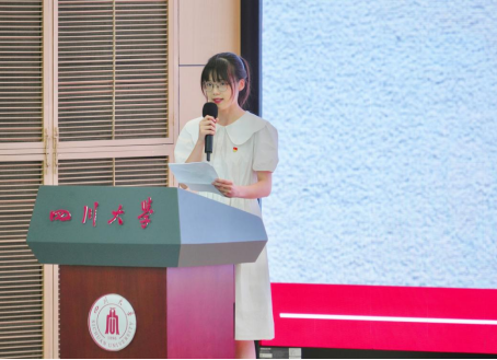2021级学生代表冉一言在发言中鼓励新生们要以饱满的热情投入到学习中,不仅要在课堂上专注于学术研究,还要积极参与各种社会活动。她提到,通过不断锤炼自己的实践能力和综合素质,大家将能够更好地应对未来的挑战,从而在大学生活中取得更加丰硕的成果;2024级新生代表杨文睿则倡议应当充分利用学校提供的学习平台与发展机会,融入川大,提升自我,并积极投入到学院与学校的工作与活动中,为学院和学校的发展贡献自己的智慧与力量。