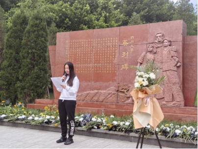 英灵不朽,山河永念。献花结束后,学生代表马莎莎、宋馨悦向同学们讲述了革命先烈英勇拼搏、不惧牺牲的故事。伴随着石墨玉、张凯元、江竹筠、黄继光、邱少云等一个个名字回响英烈碑广场,同学们对英烈精神有了更深的理解,对中华民族从“站起来、富起来到强起来”的伟大飞跃有了更多的认识。同学们也现场分享了对英雄故事的感悟、对未来的展望和对如何实现美好生活的思考。