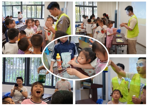 活动充分依托实验室现有器材与自制科普教具,涵盖七个趣味实验,以“理论讲解+动手实践”的简约模式传递科学知识。小朋友们亲手操作水果电池、彩球飘飘等趣味实验,在缤纷多彩的实验现象中直观感受化工原理的奇妙。现场欢呼声与讨论声此起彼伏,孩子们争相举手参与实验操作,在沉浸式体验中萌发对科学探索的浓厚兴趣,科普氛围热烈且有序。