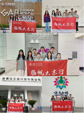 辅导员杨秀英、邓磊率6名研究生赴云南开展暑期社会实践。团队以“基础产业认知—高端技术探索”为主线,走进云南云天化股份有限公司、天安化工、磷化集团、云南化工设计院及云南白药集团等龙头单位,系统调研磷化工、医药化工等国家粮食安全、新能源、新材料战略产业链,感受云南在“双碳”目标下传统产业绿色升级实践。