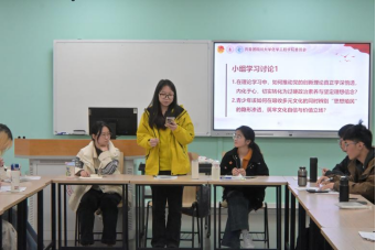 小组讨论环节,学员们围绕“党的创新理论学习深化与转化路径”“多元文化背景下思想安全风险防范”两大主题展开热烈研讨。与会同学一致认为,理论学习需立足学科特色,将党的创新理论融入专业学习全链条。针对文化安全议题,同学们提出要树立辩证思维,既要胸怀天下、兼收并蓄,更要坚守中华文化立场,厚植家国情怀,提升媒介素养等,在网络空间传播正能量。