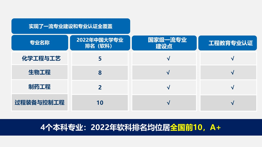 二是以新工科改革提升教育教学质量,专业建设成绩突出。全国范围内首建“互联化工”交叉试验班,并面向全国招生。实现门门课有思政内容、教师人人讲思政,校级及以上课程思政榜样课程23门,获全国高等院校化工类课程思政能力大赛特等奖、二等奖各1项,课程思政案例视频一等奖、二等奖各1项。2017年以来,学院获得首届“全国优秀教材(高等教育类)”奖2项、国家级教学成果奖1项、四川省教学成果奖3项。2位教师获教育部宝钢优秀教师奖。4个本科专业2022年均位居软科中国大学专业排名全国前10,全部入选国家一流专业建设计划,全部通过了工程教育专业认证。