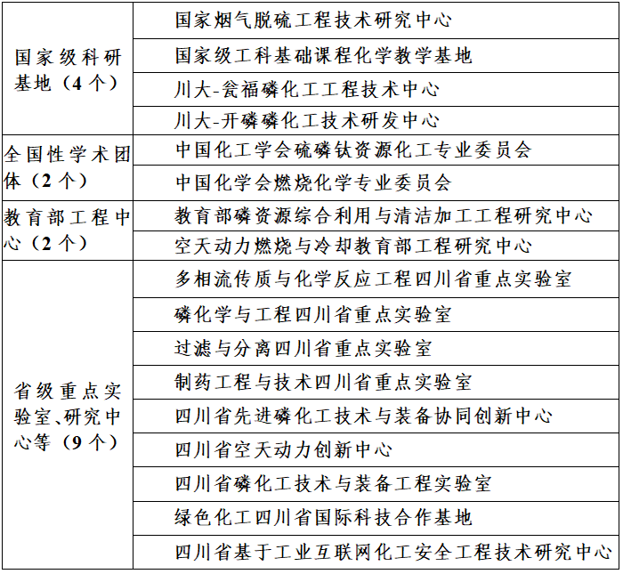 1988年,钟本和教授“中和料浆浓缩法制固体磷铵新工艺”喜获国家科技进步奖一等奖。2017年以来,学院坚持“四个面向”,着眼国家重大战略需求,着力“卡脖子”技术。逐步建立了从基础研究到工程应用的完整开发体系和人才队伍,在磷化工、低碳技术与反应工程、膜科学与技术、生物制药、互联化工、冶金工程、工业催化、燃烧化学、过程装备、新能源材料等学科方向形成了独具特色的研究领域,取得了一系列创新型研究成果。近年来,获得国家技术发明奖二等奖1项,省部级科学技术一等奖5项。承担国家攻关项目及部(省)级重大科研项目100余项。2011年、2012年和2021年,三次到校科研经费突破1亿元大关。化工人坚持“立足基础、面向工业、服务社会”,坚持“四个面向”,为国家科技自立自强作出重要贡献。近年来,科研项目覆盖全国31个省、直辖市、自治区,签订横向科研经费共计6.14亿元,在四川、云南等西部地区破亿元。