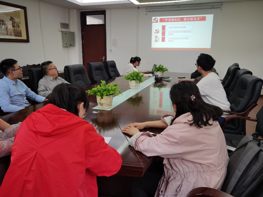 随后,行政党支部的全体党员组织开展党规党纪廉政教育,高敏同志主讲了题为“学党规党纪,做合格党员”的专题党课。她从做“四讲四有”的合格党员、贯彻落实党章的要求和以党规党纪为指引做合格党员三个方面进行了讲解,并结合行政人员和教辅人员岗位实际,要求大家要明确招生考试、评优评奖、设备采购、基建工程等关键领域风险点,严格按照国家和学校有关政策执行,时刻牢记共产党人的初心和使命,守党纪、砺作风,谱一流新篇,营造风清气正的校园环境。
