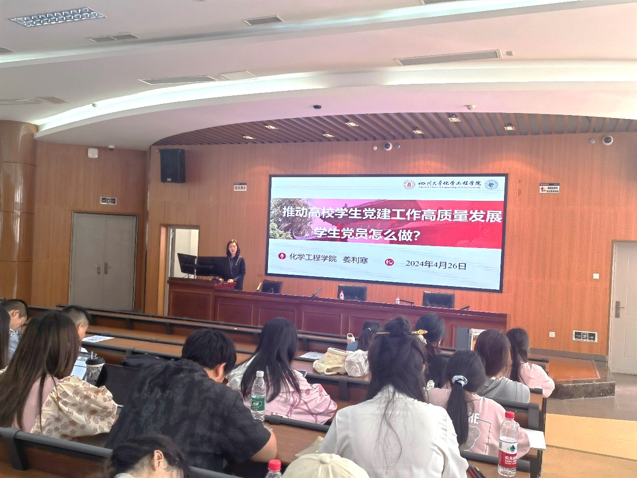 党委在望江校区研究生院2-101报告厅举办“求知”学堂2024年第一期培训班,开展党的历史、党的理论、党的纪律学习教育专题党课。学院学生党员300余人参加党课。党建科科长高敏主持培训活动。